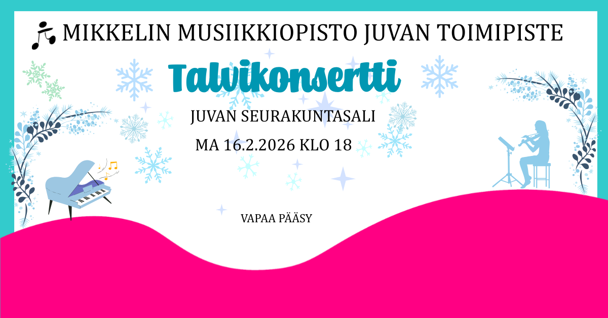 Mikkelin musiikkiopiston Juvan toimipisteen oppilaiden konsertti. Vapaa pääsy.