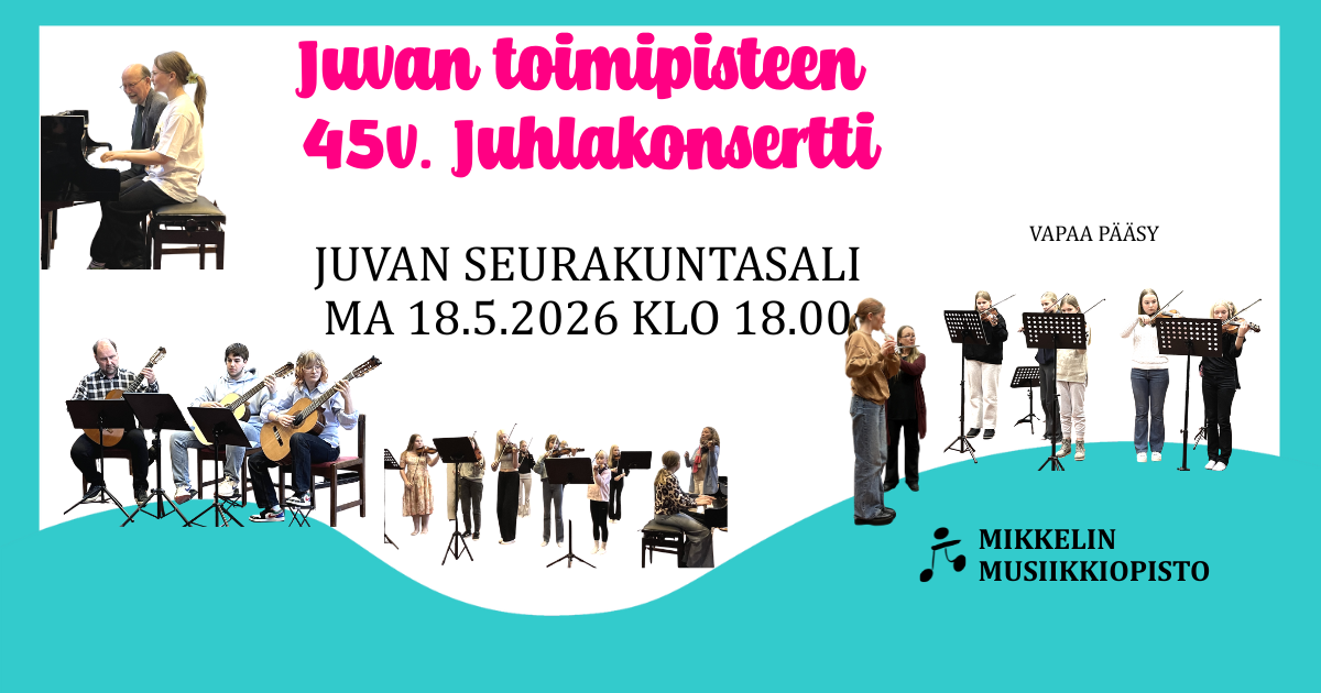 Mikkelin musiikkiopiston Juvan toimipisteen 45v. Juhlakonsertti. Vapaa pääsy.