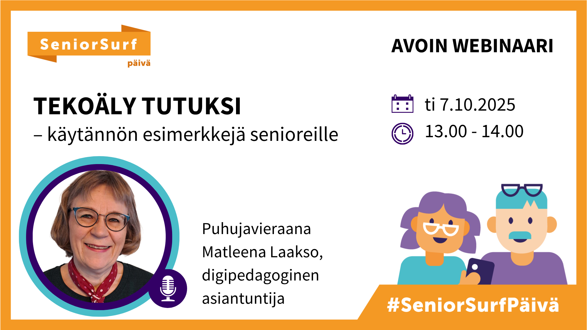 Tervetuloa seuraamaan Vanhustenviikon Seniorsurf-päivän etäluentoa kirjastolle.