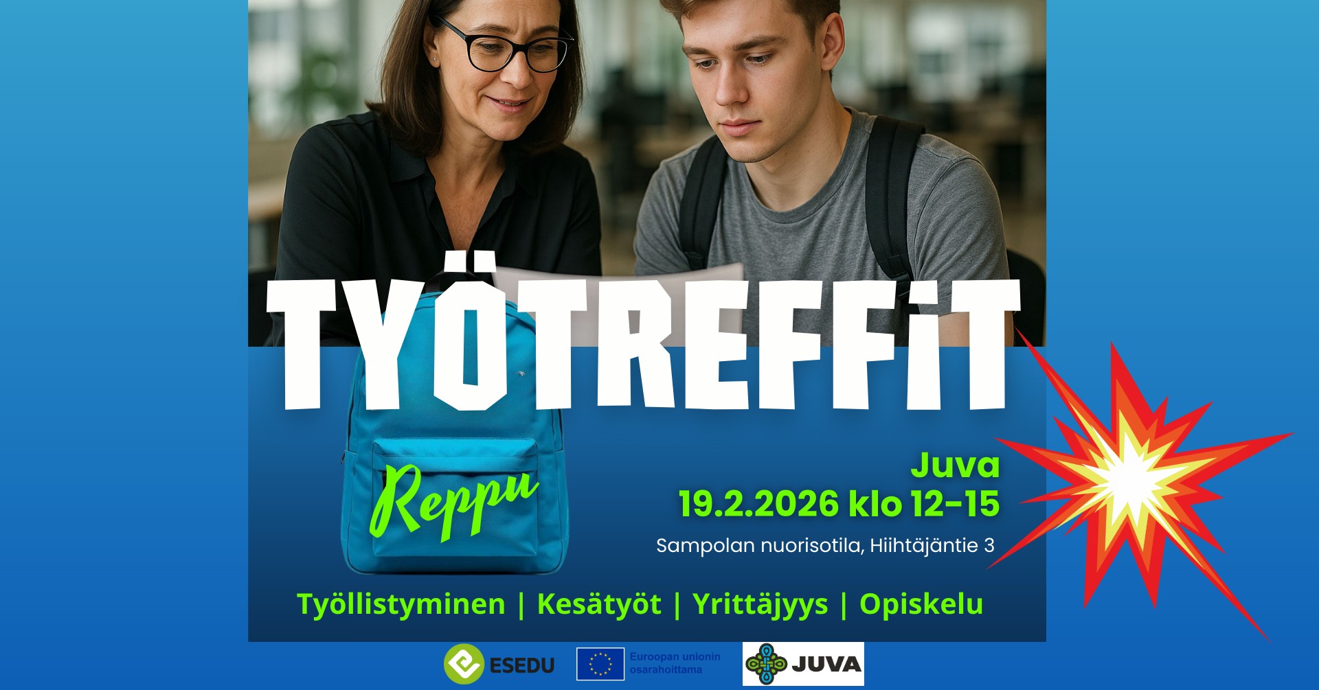 Kesätyö mielessä? Työpaikka Juvalta? Tule jututtamaan työnantajia, löydä työpaikka ja verkostoidu – REPPU kuljettaa kohti uusia mahdollisuuksia! Luvassa messupisteitä ja vapaamuotoista keskustelua. Työtreffit on avoin kaikille työelämästä kiinnostuneille!