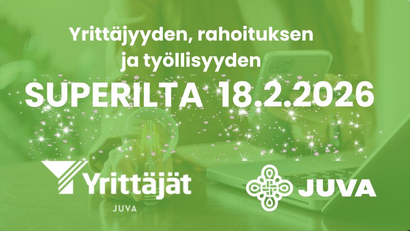 Rahoituksen, yrittäjyyden ja työllisyyden Superilta kokoaa yhteen alueen keskeiset yritys- ja rahoituspalvelut torstaina 18.2.2026 Juvan kunnanviraston valtuustosaliin. Tapahtuma tarjoaa ajantasaisen tietoiskun yrittäjille, yritystoimintaa suunnitteleville sekä työllisyyden ja elinvoiman parissa toimiville. Puheenvuorojen jälkeen on varattu aikaa kysymyksille ja verkostoitumiselle. Tilaisuuden järjestävät Juvan Yrittäjät ja Juvan kunta.