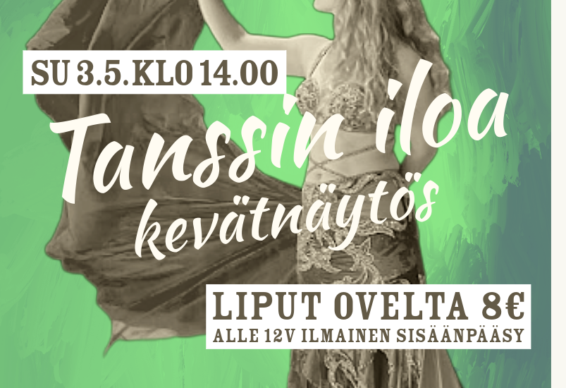 Viime keväänä hurjan suosion saanut tanssinäytös järjestetään uudelleen Juvalla toukokuussa 3.5. klo 14.00. Luvassa on näyttäviä ohjelmanumeroita, tanssin iloa ja itämaiseen tanssiin kuuluvien pukujen kimallusta. Itämaista tanssia edustavat tanssiryhmät Farah, Banat Juva sekä Almaasah. Lisäksi lavalla nähdään juvalaisia tanssiryhmiä Naisvoimistelijoiden pienet tanssijat, yhtenäiskoulun Dancing Girls sekä Ellun kanat.